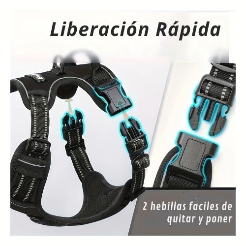 🔹 Material de alta calidad: Fabricado con nailon resistente y acolchado transpirable, evitando rozaduras y garantizando durabilidad. 🔹 Ajuste seguro y ergonómico: Correas ajustables con hebillas de liberación rápida, permitiendo un ajuste perfecto sin incomodidades. 🔹 Control total: Incluye mango superior reforzado y anillos de fijación para correa, ideal para paseos urbanos o aventuras al aire libre. 🔹 Diseño reflectante: Bandas reflectivas para mayor seguridad en caminatas nocturnas o en condiciones de poca luz.